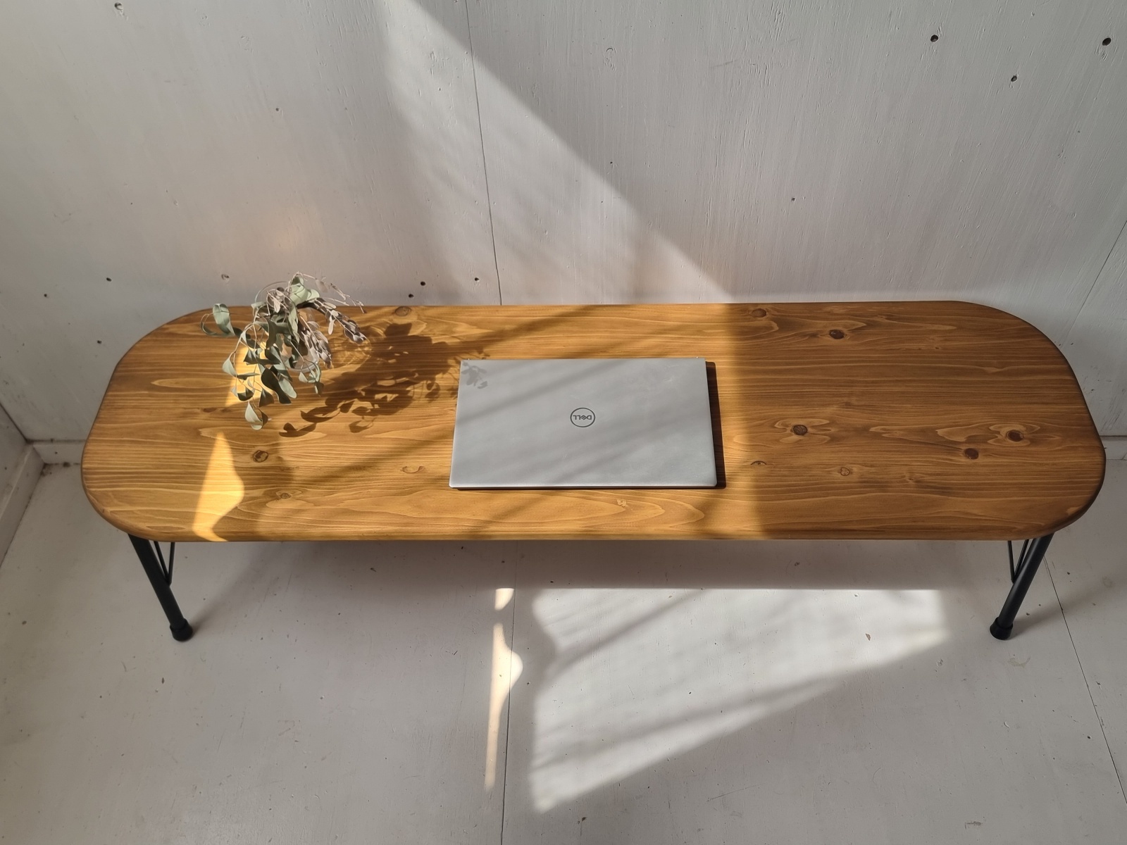 無垢ヒノキで造る家具 アイアン脚ベンチスツール 鉄脚ベンチチェア 角アール加工 h410 w1400 d420 【オスモオーク】セミオーダー品 [#1225]