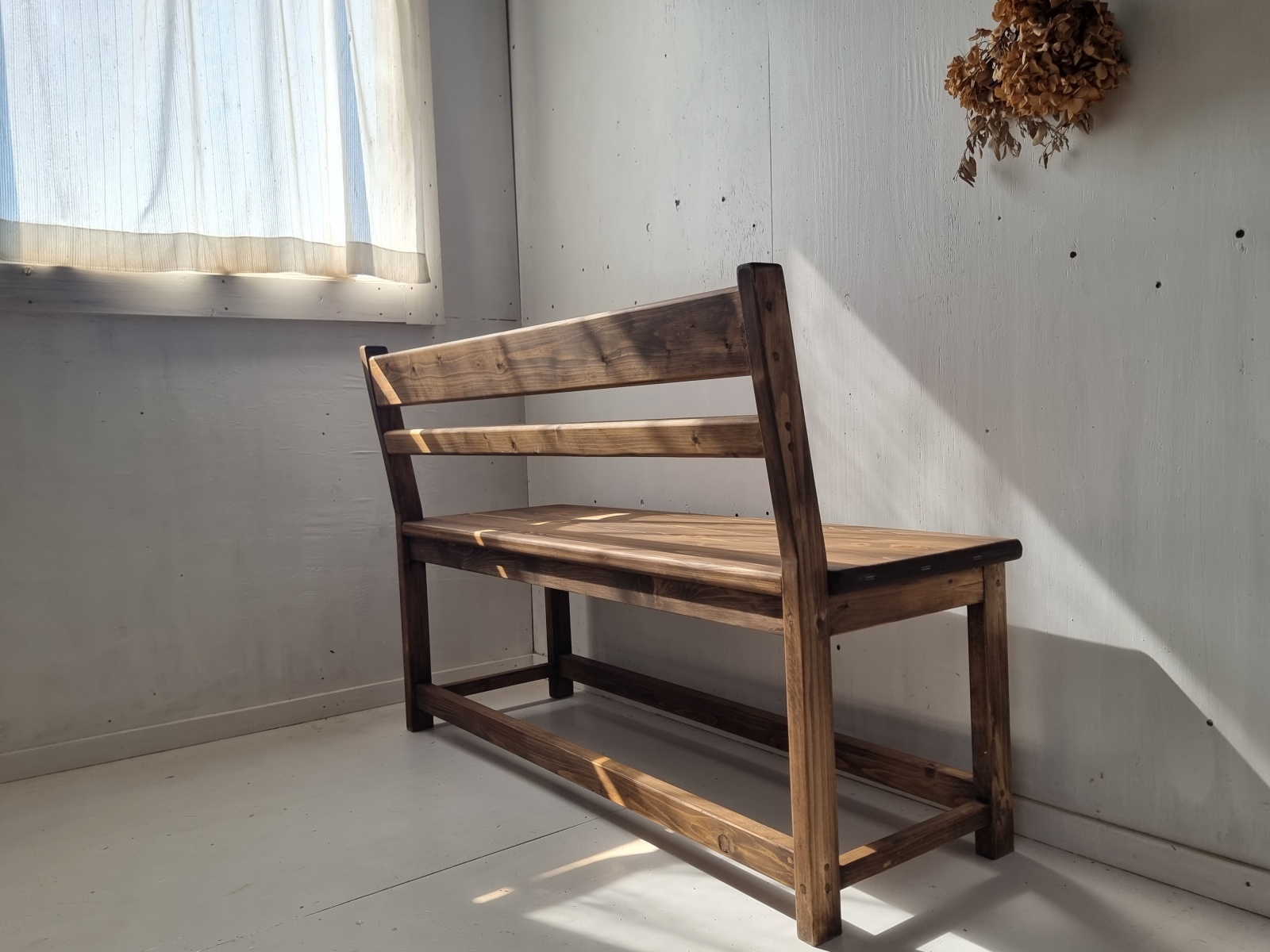 背もたれを低めに作成したベンチチェア。 背もたれの高いタイプや、棚付きのベンチも製作可能です。 ↓ベンチチェア過去製作例はこちら https://ulala.ocnk.net/produ…