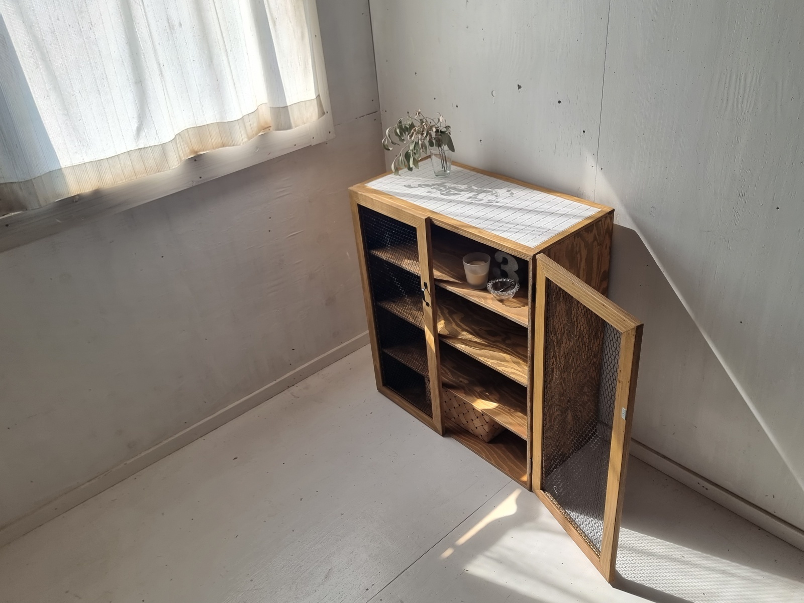 ナチュラルテイストの、片開きキャビネット。 チキンネットの扉が他にはない雰囲気を作り出してくれます。 ・サイズや仕様など、ご希望通りに製作可能。 ・木の扉に変更も可能。 …